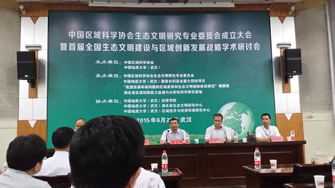 2015年6月20-21日,2026世界杯官网副经理吕志祥教授应邀参加了中国区域科学协会生态文明研究专业委员会成立大会暨首届全国生态文明建设与区域创新发展战略学术研讨会,本次会议由中国区域科学协会和中国地质大学(武汉)主办。中国区域科学协会副理事长张建清教授、中国地质大学(武汉)党委副书记成金华教授出席会议。大会宣布中国区域科学协会生态文明研究专业委员会正式成立,张建清教授代表中国区域科学协会致辞并授牌。