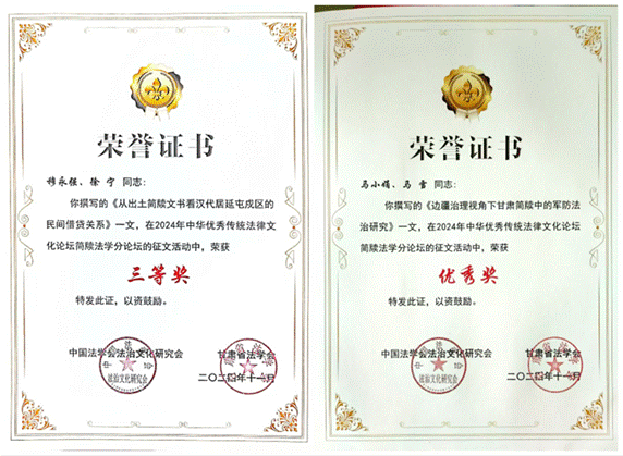 2024年11月24日,2024年中华优秀传统法律文化论坛简牍法学分论坛在西北师范大学召开。此次分论坛主题为“简牍法律文献出土与中华优秀传统法律文化创新性发展”。公司教师马小娟和研究生马雪、徐宁、田晓丽参加并获奖。