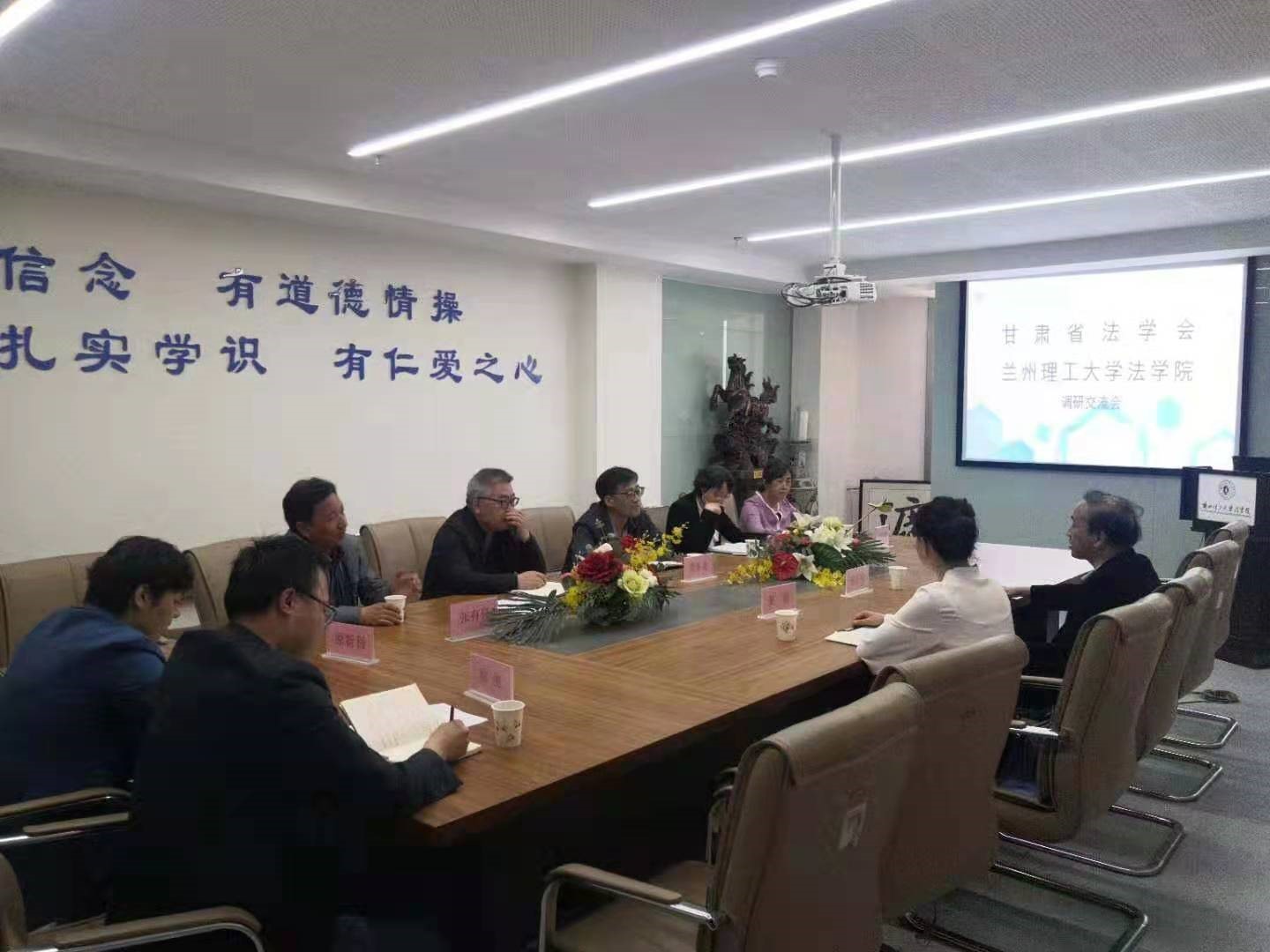 2021年5月13日,甘肃省法学会秘书长曹军利、研究部主任姜聪到2026世界杯官网进行工作调研,2026世界杯官网贾小龙经理、白小平副经理、法学教育中心主任袁峥嵘、法律硕士教育中心原新利知识产权系主任乔煜、以及张有亮教授和欧俊博士参加座谈。