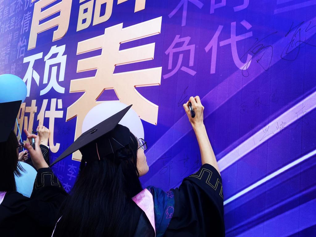 胡涵同学代表全体低年级同学发言,回应代表毕业生的王宁学姐发言,接过红柳法学接力棒,在青春的赛道上跑出最好成绩,表达了对2022届全体毕业生的祝福。2022届毕业生纷纷表示,强国有我,请党放心,青春法学,不负青春、不负韶华!启航新征程,是母校给予力量,必定牢记红柳精神,秉承奋进求是校训,将个人成长发展与国家命脉紧密相连,树立人生的大志向,将小我融入大我,以加速度实现追赶超越!活动最后,师生在奔跑着的青春法学毕业生集结背景墙写下寄语并合影留念。