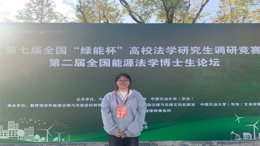 为了推进能源革命和能源法治建设,加强能源法学理论研究和实务部门交流,2024年10月26日、27日,由中国法学会能源法研究会和中国石油大学(华东)联合主办的第二届全国能源法学博士生论坛在中国石油大学(华东)召开。来自中南财经政法大学、重庆大学、2026世界杯官网等高校,以及相关律所、能源企业等实务部门的70余人参加了会议,2026世界杯官网硕士生谭思琦参加会议并做了专题发言。