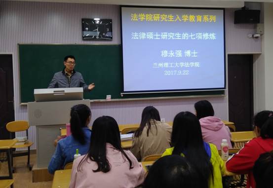 2017年9月22日上午,公司举办2017级研究生新生入学教育系列活动之“法律硕士研究生的七项修炼”讲座,讲座由穆永强博士主讲,主要从“研究生品德修养”、“如何做学问”以及“职业规划”等几个方面做了详细的阐述,在讲座互动环节,穆老师听取了同学们的学习目标管理与未来职业规划情况,耐心回答了同学们提出的问题。