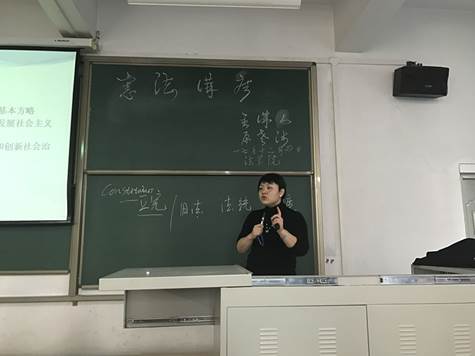 原新利博士以“学习贯彻党的十九大精神,维护宪法权威”为切入点,以“十九大报告中的宪法词频”为主题,围绕党的十九大报告中有关宪法内容的阐述和习近平总书记关于宪法的重要论述,结合现行宪法的基本原理、基本内容,从国家为什么要设立“国家宪法日”、依法治国为什么首先要依宪治国、如何推进合宪性审查工作、学习宪法的重要意义等方面进行了深入的讲解。同时,原新利博士以“人民”、“法治”、“民生”、“监督”这四个十九大报告中的宪法集中词频,阐述了全面推进依法治国与依宪治国的关系,讲座内容重点突出、脉络清晰、内涵丰富,使同学们在深受教育和启发的同时,更加懂得用习近平新时代中国特色社会主义思想和党的十九大精神武装头脑,推动形成尚法、遵法、守法、用法的良好氛围。